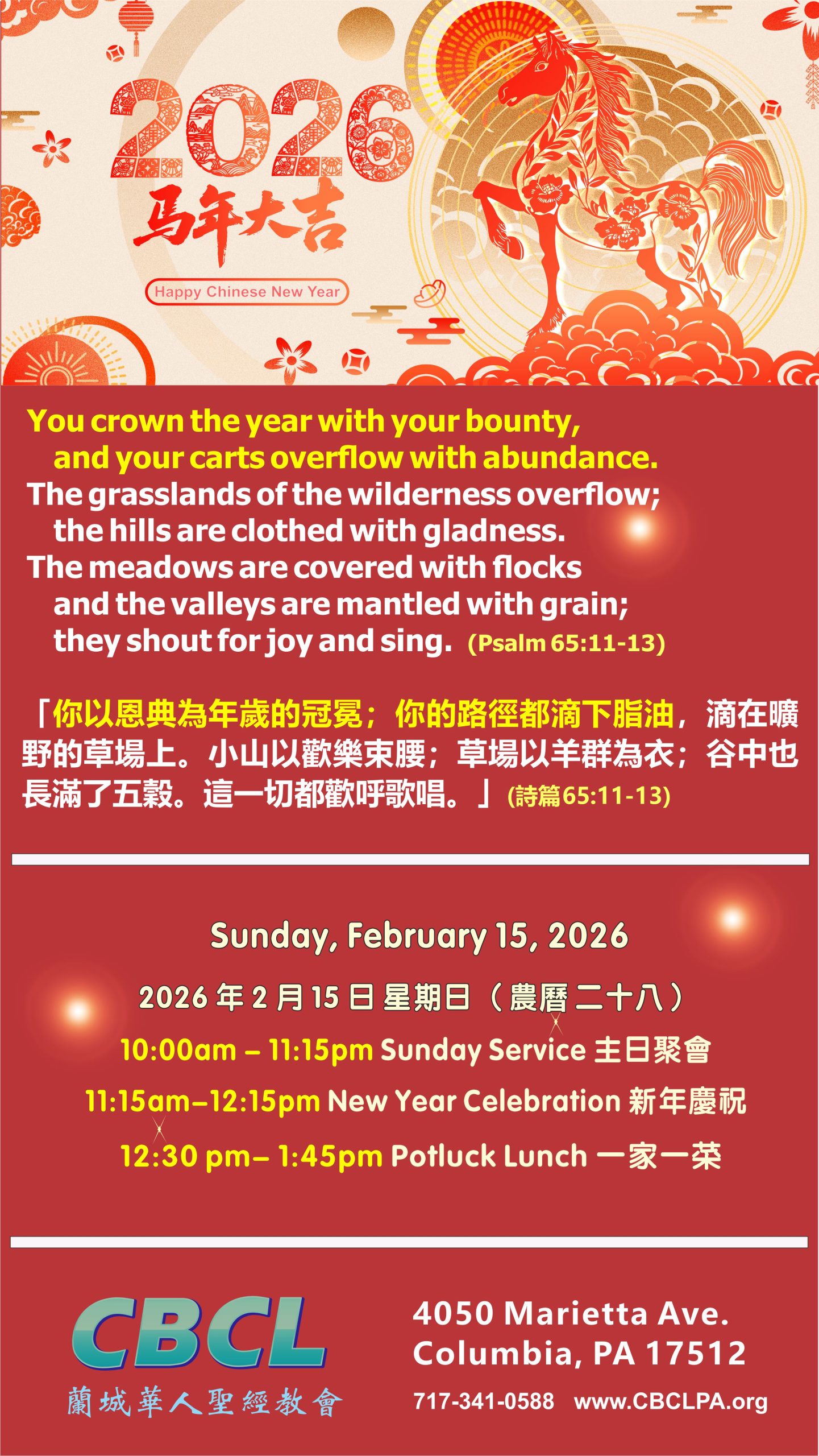 Our church will celebrate Chinese New Year on Sunday, February 15th.